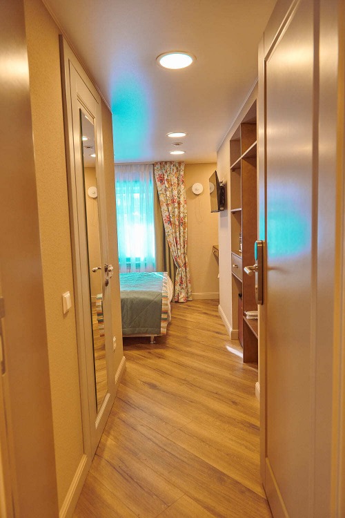 Дизайн в светлых тонах с яркими акцентами гармонично дополняют исторические предметы декора, которые получили вторую жизнь. Помимо оригинального дизайна, все номера имеют современное оснащение: TV, высокоскоростной интернет.